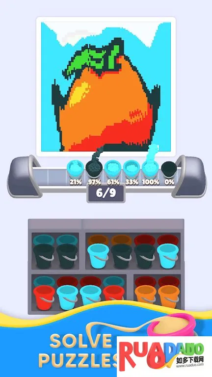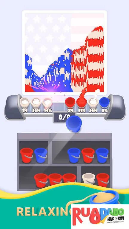1. 游戏上手容易,选择正确桶收集匹配沙子就能完成作品,精通后极具成就感。