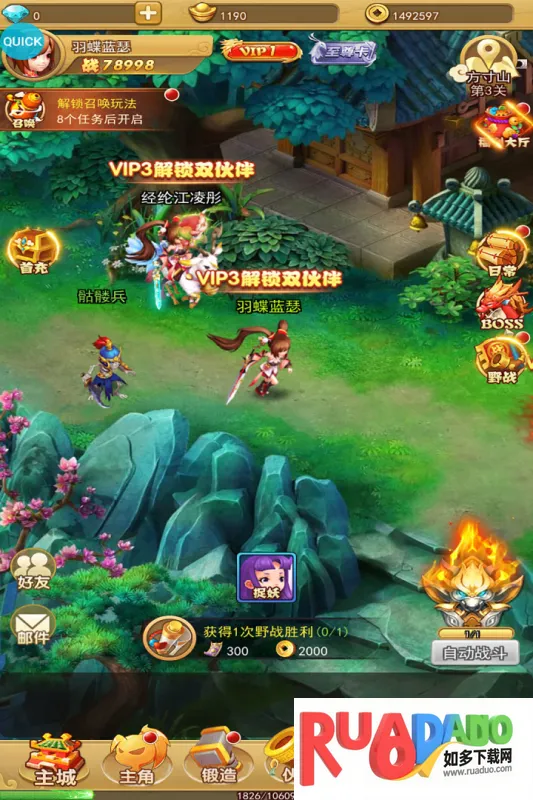 2. 采用RPG经典平视视角及时尚画风,技能特效绚丽夺目。