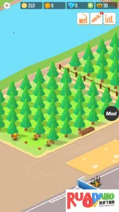 1. 卡通画风治愈视觉:Q版角色与清新色调营造轻松氛围,伐木工挥斧、卡车运输等动作细节生动,UI布局简洁,信息层级清晰,长时间游玩不疲劳。