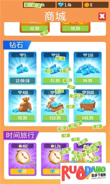 1. 拥有无限钻石,可轻松招募工人升级设备,提高生产效率。
