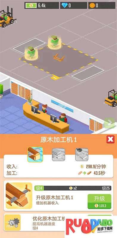 3. 可通过处理订单赚取点数,永久增加工厂收入,朝着木材大亨迈进。