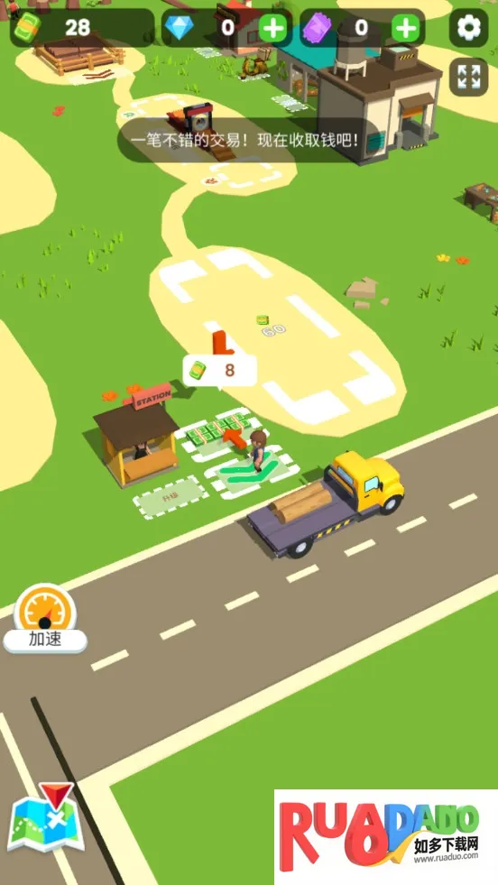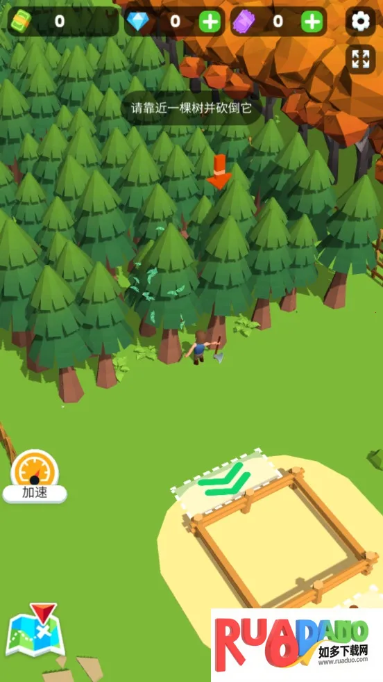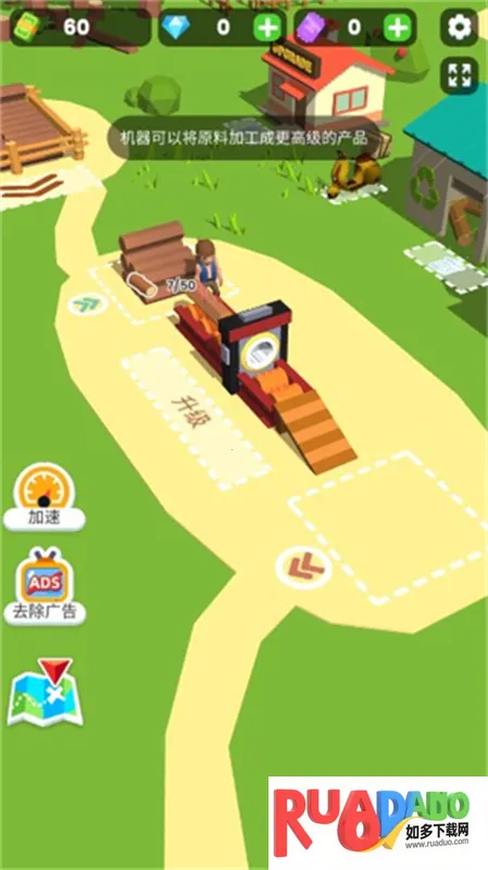 1. 游戏玩法简单易上手,控制虚拟键盘移动人物,点击钞票解锁仓库,靠近树砍倒后放入仓库,钞票足够时升级仓库、雇佣伐木工、购买加工机器等,完成一系列操作获得资金。