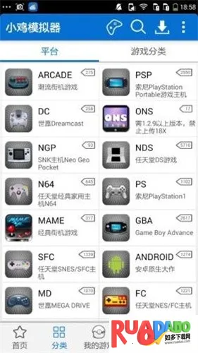 1. 支持多平台游戏模拟,包含GBA、FC、SFC、MD等数十种经典游戏主机。