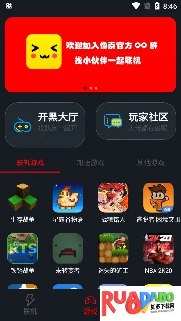 像素联机官方版是实用远程联机辅助软件,涵盖怪物猎人等热门游戏。提供一键联机、丰富皮肤与攻略。有大型游戏轻松安装等特色,无局域网限制,手机可建服,正版免费,让玩家畅享极速联机乐趣。