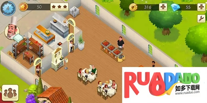 3、餐厅升级包括桌椅和装饰品,升级需大量金币,桌椅影响客流量,装饰品按风格搭配。