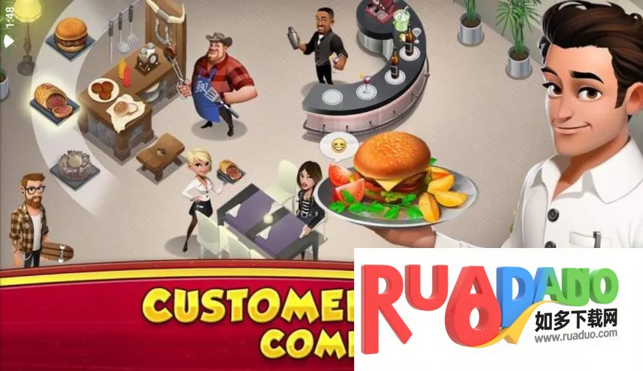 1. 玩家能从简朴小餐馆起步,凭借自身能力吸引食客,伴随一道道菜品呈上,餐馆不断发展壮大。