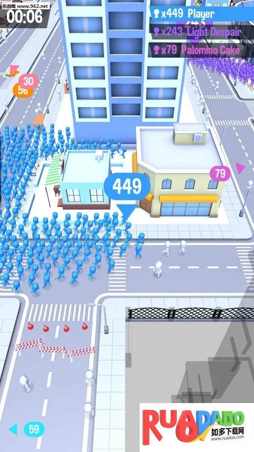 CrowdCity是Voodoo推出的休闲竞技游戏,中文名拥挤城市。3D卡通画风,以城市为背景,玩家操控人群以大吃小,同化他人壮大军团,还有多样玩法、大量皮肤,操作有难度,乐趣十足。