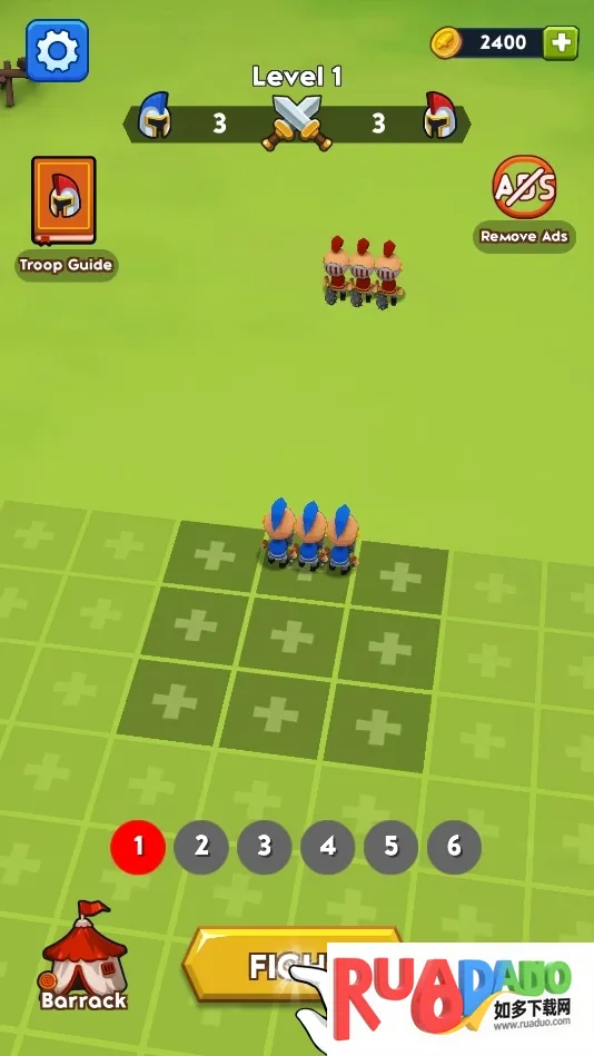 3. 提供很多关卡供玩家解锁挑战,关卡中士兵数量随机,需排兵布阵,利用地理位置击败对手。