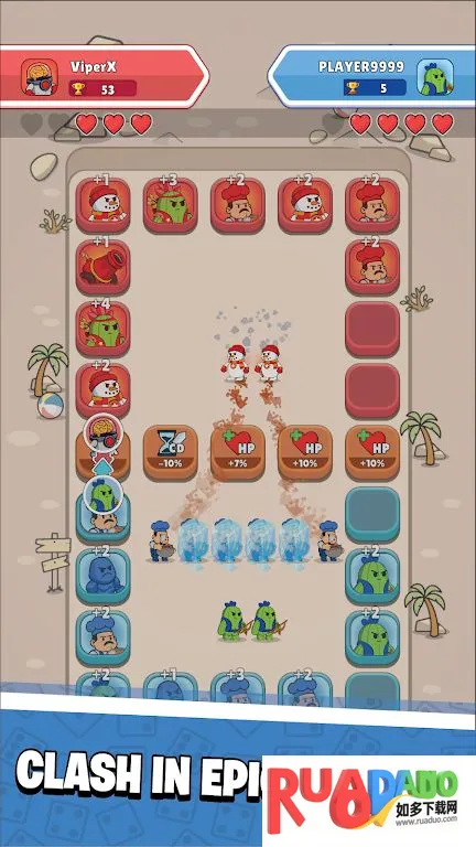 命运之战竞技场是一款融合卡牌策略与骰子驱动移动机制的游戏。在竞技场中,你可以把卡牌放置在棋盘上,通过掷骰子来移动角色,落在正确方格就能触发战斗。这里的策略性 PvP 战斗,双方遵循相同规则。你要做出明智决策,依据骰子点数灵活调整,击败敌军赢得回合。而且能探索不同角色,通过赢得奖杯解锁强大新角色,每个角色都有独特游戏风格和战术。还有基于奖杯的成长系统,赢得战斗收集奖杯,解锁更强对手,在竞技场不断攀升。每场比赛骰子点数不同,巧妙计划才是胜负关键。它易于上手但难于精通,比赛时间短,策略深度高,耐玩性强。快来进入竞技场,书写属于你的命运吧!