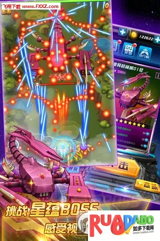 2、拥有炫酷弹幕系统,还有多种战机可供选择。