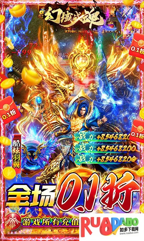 想在游戏里打造超厉害的幻域战魂阵容吗?来玩这款国风封神福利手游就对啦!它有超多福利,充值畅享0.1折,创角就送一堆好东西,像通宝88000、鸿蒙神将自选卡等。游戏采用挂机玩法,选好关卡就能自动战斗,超轻松。除了闯关,还有比试、历练副本等多种玩法。在这里,你能收集上百种神将,组合出各种不同玩法的阵容。每个神将都能搭配秘法、符文、装备,提升战斗力。完成任务能领千抽,闯关还有几率得充值红包。通过领取礼包、抽角色、配置上阵、升级、征战关卡等步骤,就能轻松打造强大阵容,享受游戏乐趣,还能在充值活动中领取超值礼包,天天签到领真充红包,简直不要太爽,快来试试吧!
