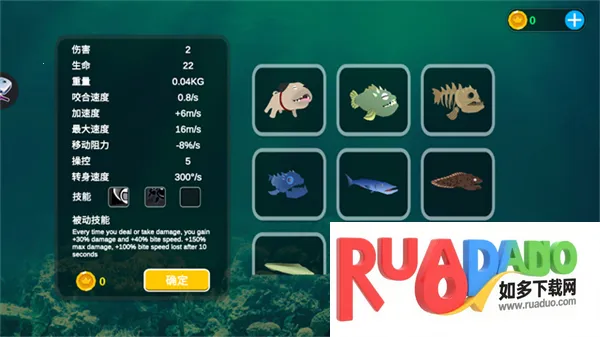 1. 玩家能体验海洋生物生活,选择控制不同鱼类,通过猎杀成长进化。