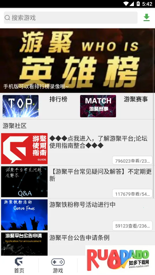 1. 游聚游戏平台为玩家带来全网各类型的游戏,有非常详细的游戏分区。