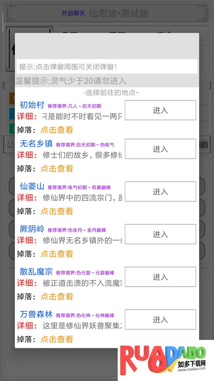 初入修仙界破解版是一款纯文字mud手游,有完整故事背景,多种玩法。可无限探索隐藏功能,挂机升级,抢夺BOSS资源,还能抢夺商城道具。十万字原创剧情,带你感受宏伟修真世界,体验纯粹修仙冒险。