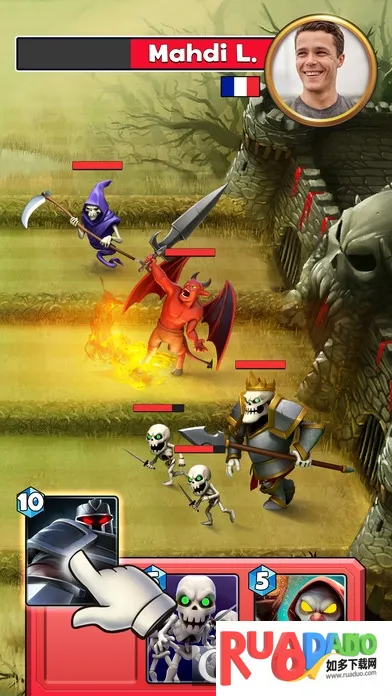 2、游戏提供了丰富的策略玩法,玩家需要精心搭配卡组,并制定出有效的战斗策略,以摧毁敌方城堡为目标进行攻防战。