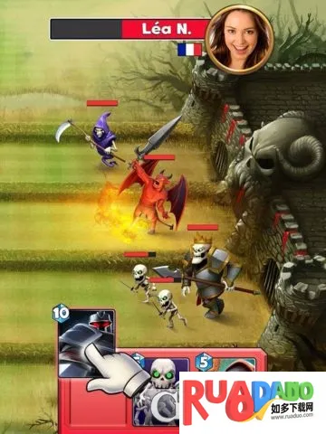 1、玩家可以收集并升级超过40个不同的部队和法术,包括树精和飞龙等多样角色,通过献祭重复卡牌来提升特定卡的属性。