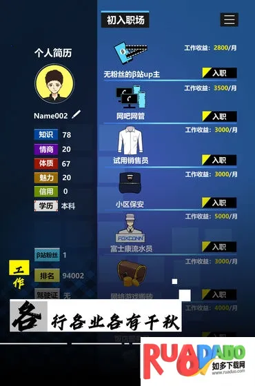 1、丰富的职业发展选项,涵盖多种行业,能让玩家从 IT 巨头到金融专家等领域,找到适合自己的职业发展方向。