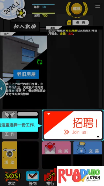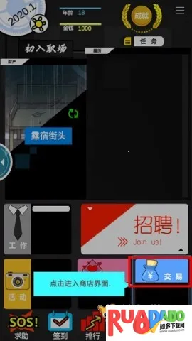 2、点击“交易”进入商店,租赁一套房子,开始在这个城市打拼。
