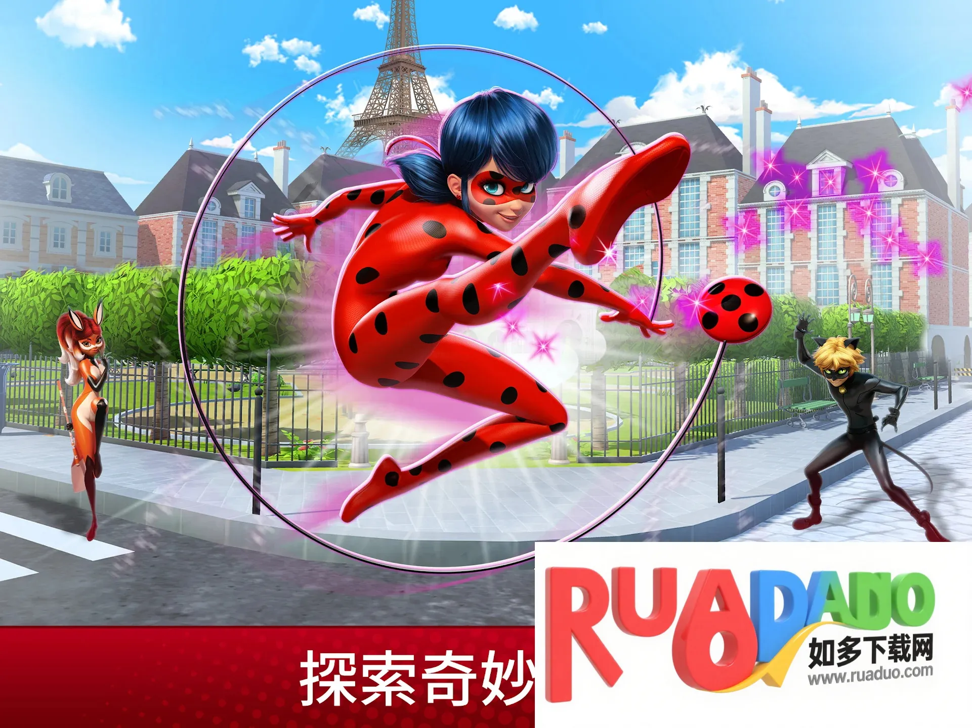 1. 在巴黎全境展开探索,帮助朋友赚取魔法瓢虫硬币,从玛丽娜和艾俊变身瓢虫雷迪与黑猫诺儿,拯救巴黎,成为独特英雄。