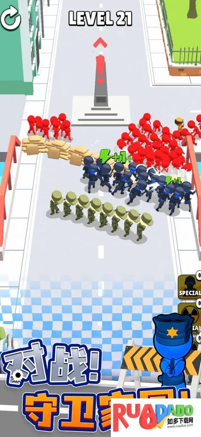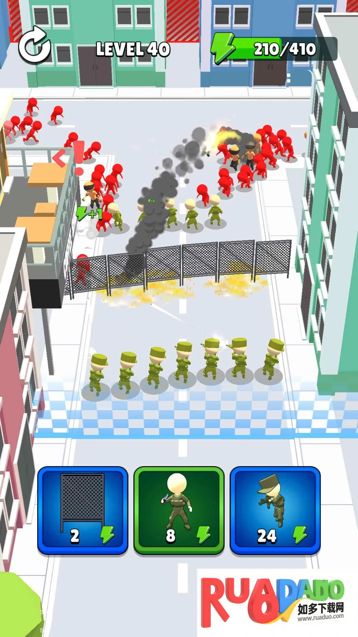 城市奇兵2026官方正版是一款3D卡通风格塔防游戏。玩家构筑防线抵御怪物突袭,能挑选橡皮人作战,升级装备、招募战士。点击栅栏规划防御,召唤士兵抵御,击败敌人获体力,通关依表现获奖励,玩法刺激策略性强。