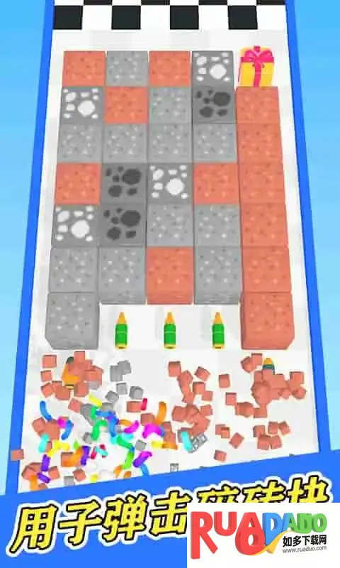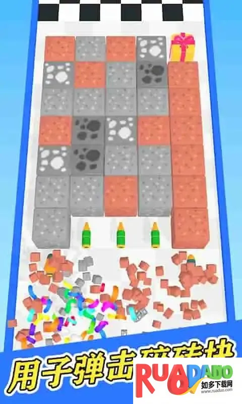 3根据障碍物的排列和距离,巧妙安排子弹的放置位置,让它们能击碎最多障碍。仔细观察场景,规划最佳路线。