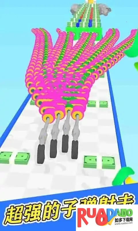 合并子弹头最新手机版是一款休闲闯关手游。玩家在关卡放置子弹自动跑酷击碎障碍,可合成升级子弹、收集金币购买道具。到达终点能获宝箱,还有创新合成系统、多样场景及丰富装备道具等,玩法丰富有趣。