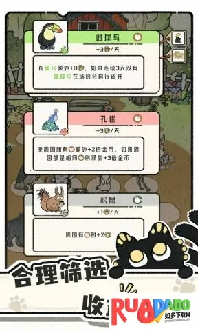 2. 拥有超160种独特小动物,每种都有特别能力和个性,能自由搭配构建生态链,最大化每日收益。