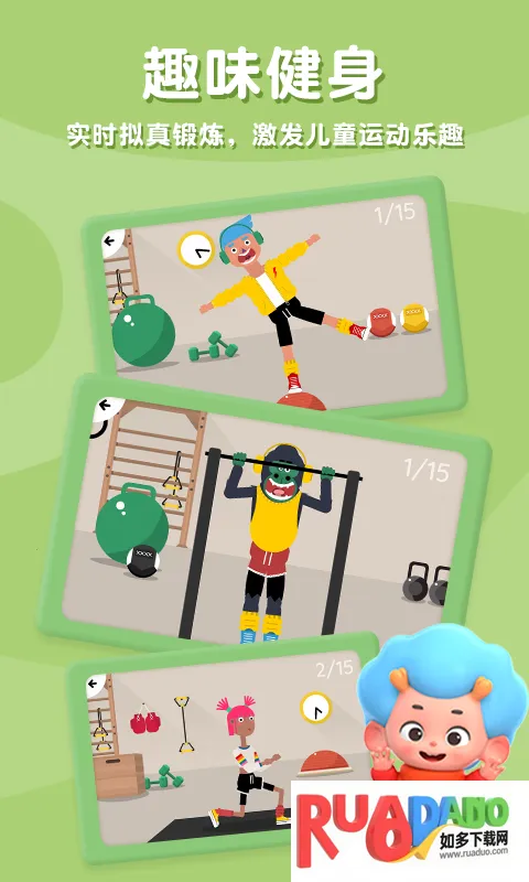 4. 能从6个有趣角色中挑选,为其搭配时尚运动装,体验多达20种不同运动项目,自由选择锻炼地点。