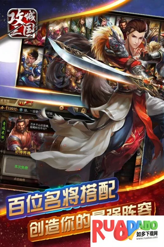 3. 拥有华丽伙伴阵容,可收集50余名三国经典名将,通过多重养成方式全方位提升武将能力。