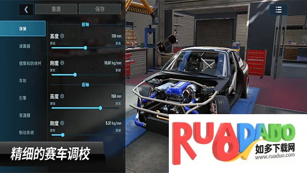 3. 自定义车辆设置:玩家可以根据自己的喜好和需求,调整车辆的悬挂轮胎和外观等设置,打造独一无二的赛车。
