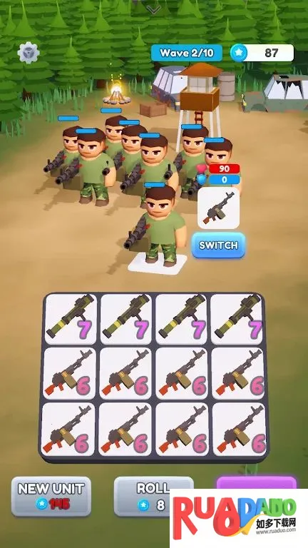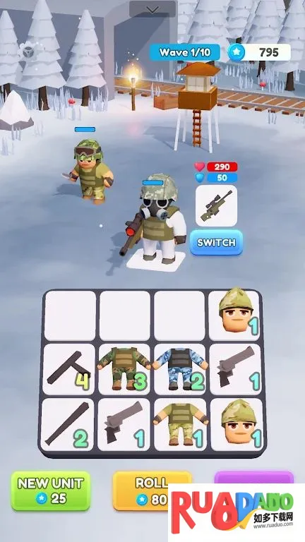 3. 能建设与升级塔防小队,为单位配备多级武器和盔甲。