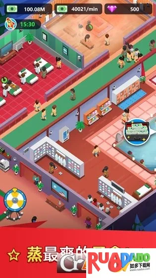洗浴中心大亨是模拟经营小游戏,题材新颖,放置玩法,离线也能壮大洗浴中心。画面真实,玩法丰富,要修建区域、升级设施、装饰吸引顾客,做出关键决策,提供舒适服务,打造豪华洗浴中心