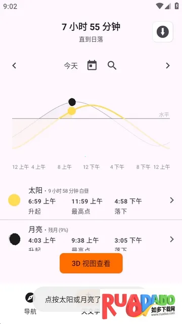 6、点按太阳或者月亮可了解位置详情。