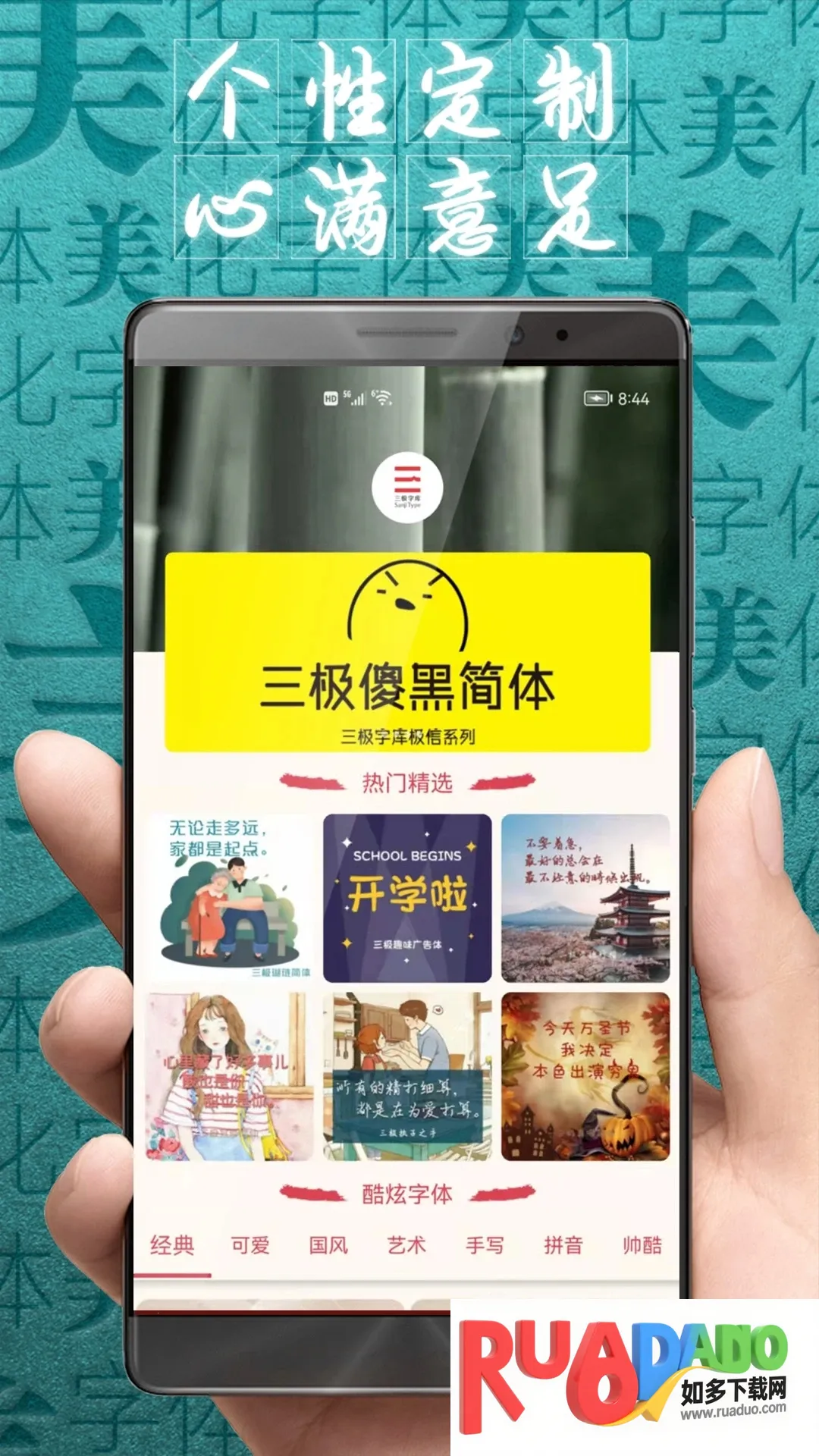 1、字体超全,楷体、黑体、行楷、圆体、手写艺术字等20分类,经典潮流。