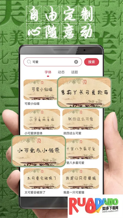 字体美化大师能轻松满足你美化字体的需求。它汇集了方正楷体、华康少女体等上千款精品字体。功能超强大,云字库秒级分发,点击即下即换,瞬间完成字体替换;还能先预览再替换,输入文字实时看效果,满意后一键应用。全机型适配安卓5.0及以上版本,热门品牌机型测试通过,无需Root也能安全换字。软件特色众多,字体超全,有20分类,经典潮流;智能分类,按风格、用途、热榜、好评等多维度整理,3秒就能锁定心仪字体;应用级换字,完美支持微信、QQ、陌陌、手游、输入法等主流App单独替换。换字体步骤简单,打开软件点击字体榜单,找到喜欢的字体点击下载,下载成功后点击立刻更换就行。有了它,就能轻松赋予手机个性,告别单调,彰显独特魅力。