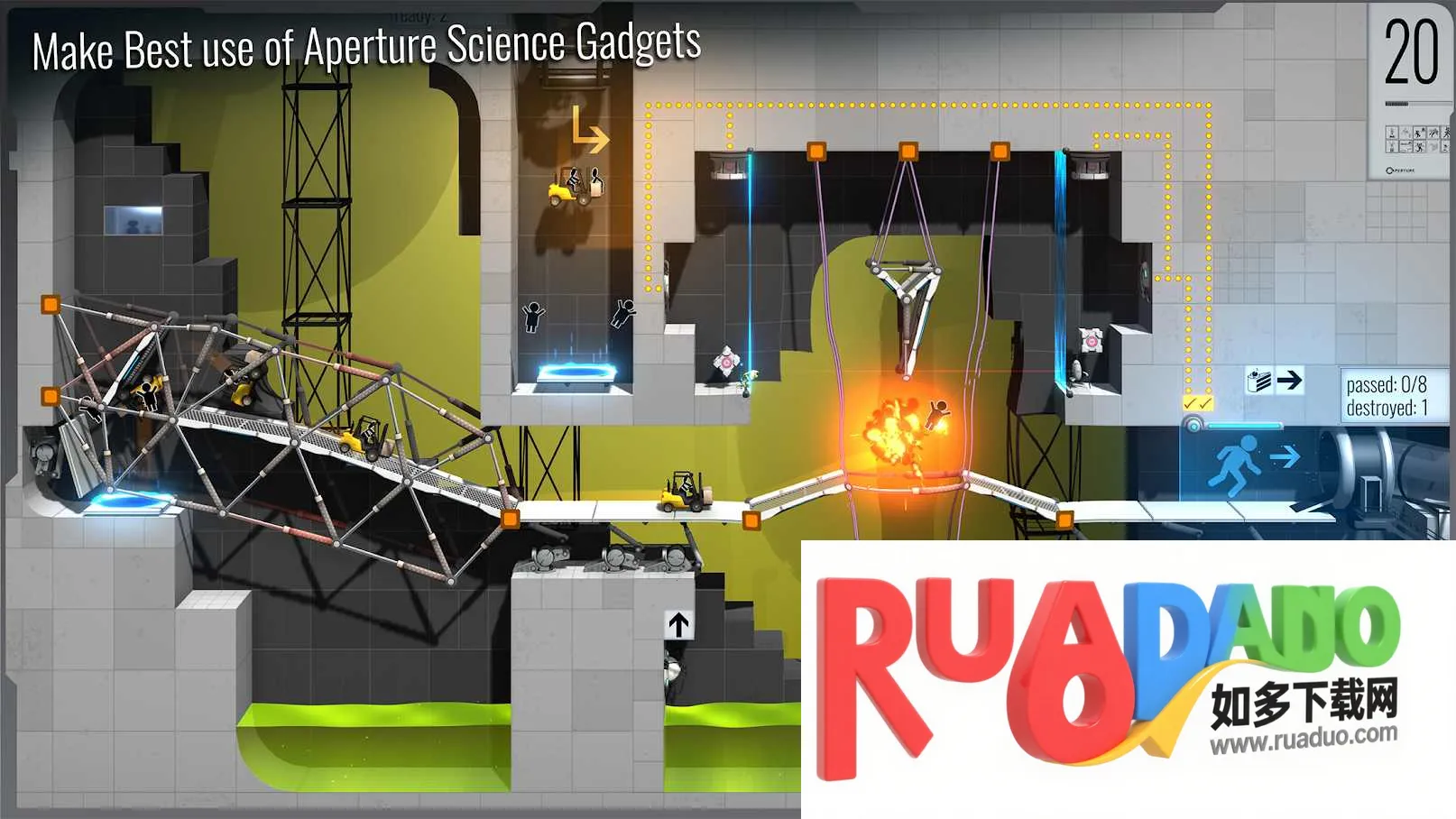 桥梁构造者:传送门将经典Portal与BridgeConstructor结合。在光圈科技测试室,利用传送门等工具建桥梁等建筑,助班迪安全过终点。含60个测试室,有GLaDOS引导,还有GooglePlay游戏服务成就,支持平板电脑。