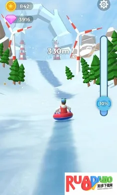 2、能在雪地赛道高速滑行,体验无尽奔跑与刺激关卡挑战。