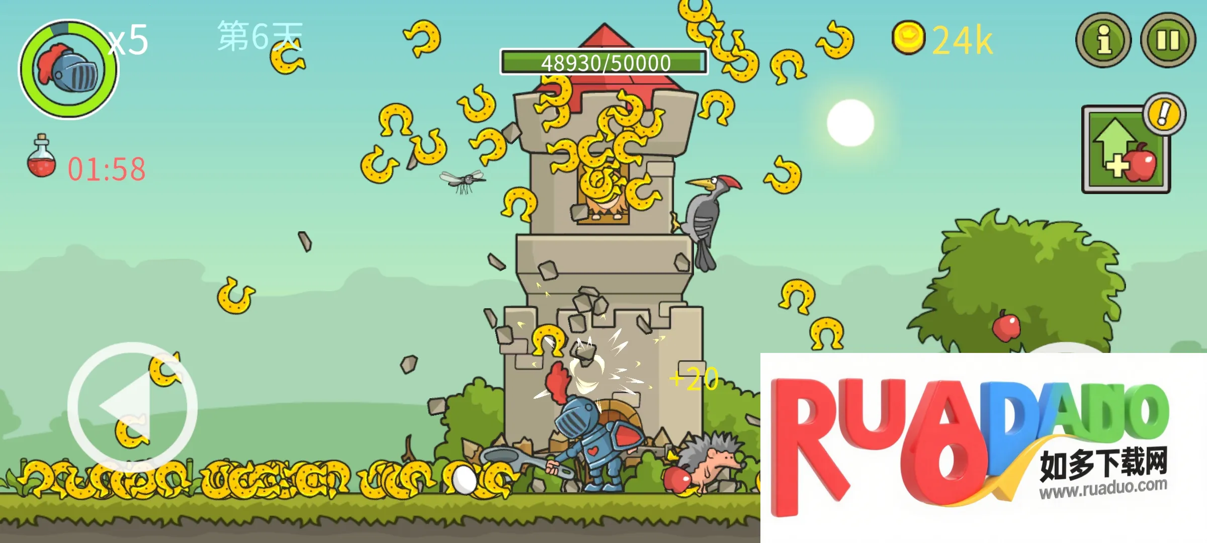 《城堡破坏者》是一款放置类小游戏,玩家扮演骑士拯救公主,需摧毁高塔,收集食物增强英雄力量,借助升级助手尽快完成任务,争做第一名救出公主的骑士,祝你好运!
