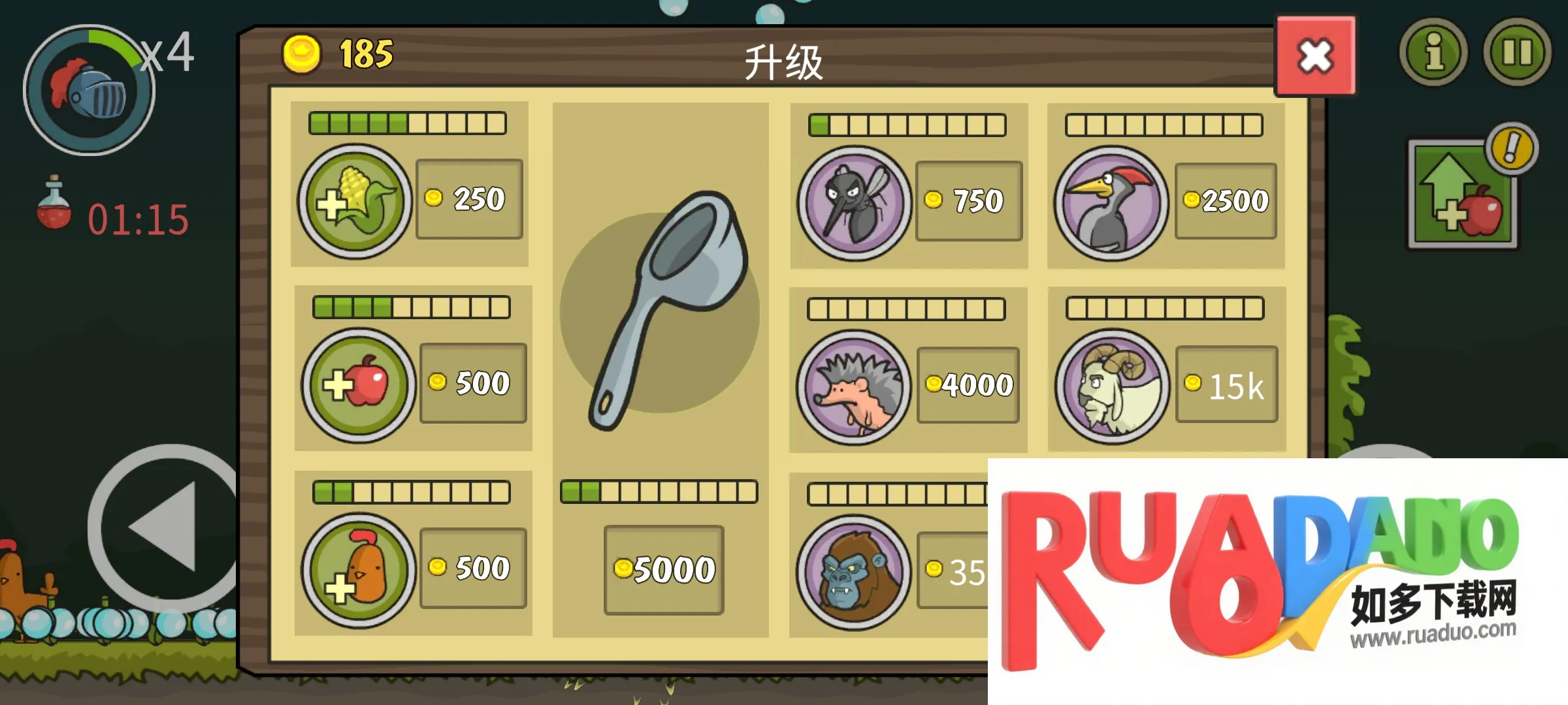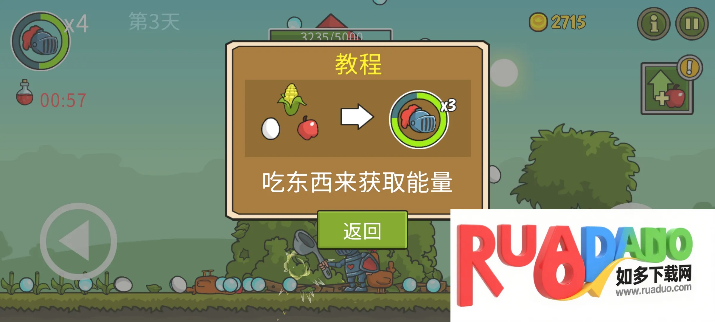 3. 可收集食物增强英雄力量,借助升级助手尽快完成任务。
