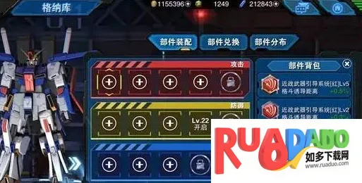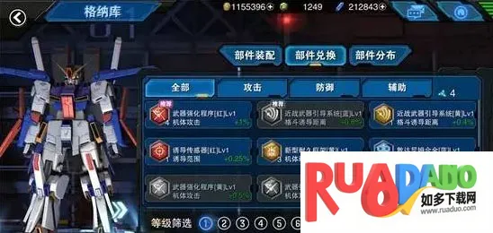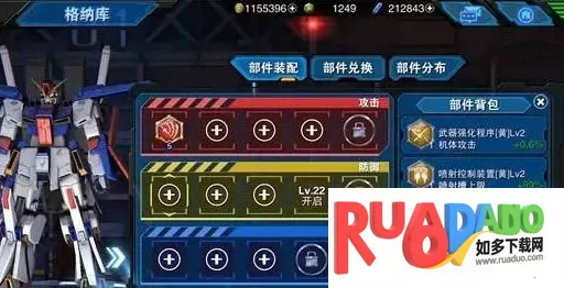 2、根据各类部件的能力,均能对机体属性各项进行一定比例的提高,诸如格斗的诱导距离、喷射槽上限、机体耐久与防御的加成等等。