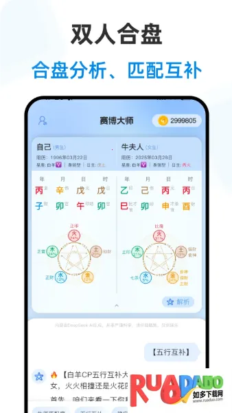1. 赛博大师内置完善的ai测算系统,输入名称和生辰八字就能迅速推送财运爱情等信息。