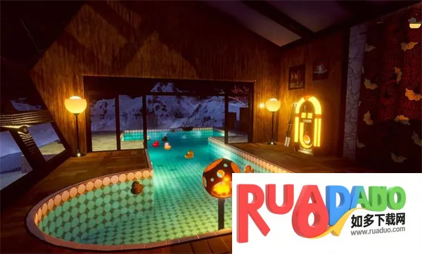 1. 多样化场景:提供海滩、温泉、太空泳池等数十种场景,均通过3D建模打造,独特视觉风格,如太空泳池的失重漂浮效果,雪山温泉的飘雪与热气蒸腾细节。