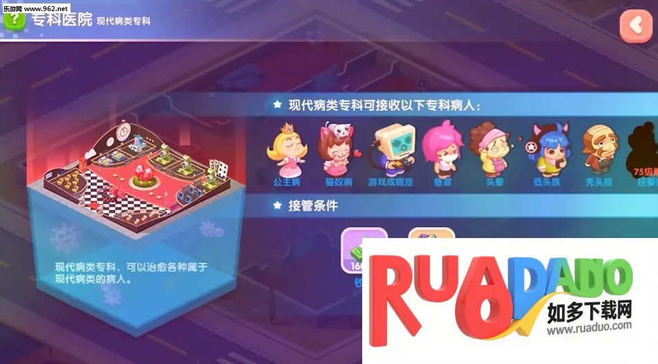 1. 可自由扩建摆设科室,装饰装潢风格任选,能打造暗黑风、少女心风格的医院,还能建医院后花园或高逼格员工休息室。