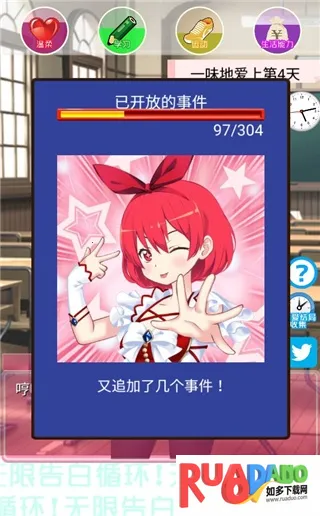 《无限告白循环游戏攻略》能帮你轻松玩转这款超有趣的恋爱模拟游戏!在游戏里,你可以自由选身份,体验多样剧情。和各种性格的角色互动,培养感情提升亲密度,感受独特恋爱体验。它是日式风格的经营养成游戏,已完成中文适配。画面清新操作简单,玩法丰富超好玩。你会扮演在校学生,邂逅多位个性迥异的角色。日常对话和互动中,每个选择都影响她们对你的态度。关键选项能让剧情走向不同分支,游戏初期主角不突出,提升能力后更多剧情展开。而且要合理分配技能点发展属性增强实力。这里有超多种结局等你探索,达成完美结局虽有挑战,但每次抉择都影响最终结果。通过攻略,能让你更清晰地知道如何推动剧情,触发惊喜情节,轻松进入无限告白循环状态,尽情享受游戏乐趣!