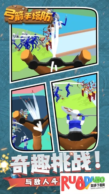 3. 要击败邪恶怪物,收集战利品卡片升级塔和弓箭手提升战力。