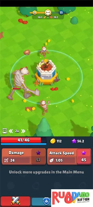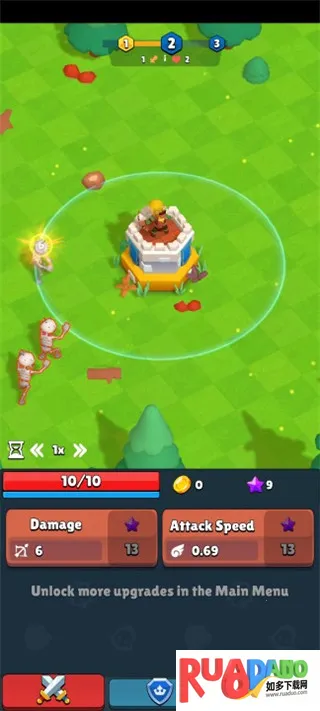 2、在这个魔法世界中,你需要不断的击败邪恶的怪物,并通过升级弓箭手的攻击伤害,击败更加强大的怪物;