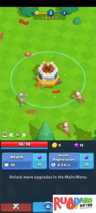 3、随着关卡的递增怪物也越来越多,升级你的塔提升血量以及防御力,以此抵御怪物的攻击;