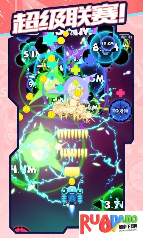 激光40关解锁,是瞬间群体伤害武器。火力高时打一下病毒就分裂,范围较广。缺点是射速中等,且只能打成直线。