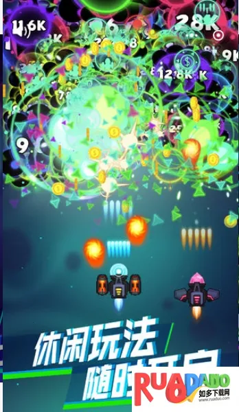 1. 上手轻松,操作简便,单指滑动控制战机移动,新手三分钟即可掌握核心玩法。