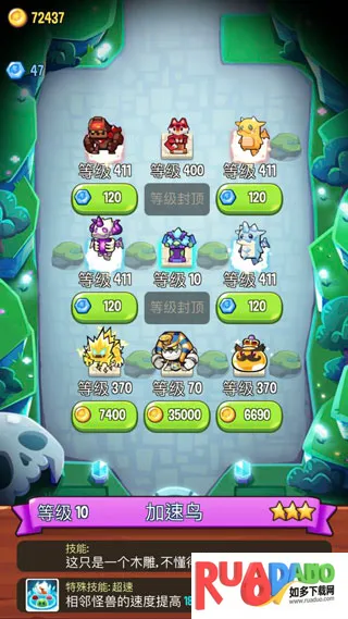 1. 提供60余种怪物伙伴,涵盖四档稀有度,每只怪物拥有独特攻击方式与终极技能,收集与搭配策略性极强。